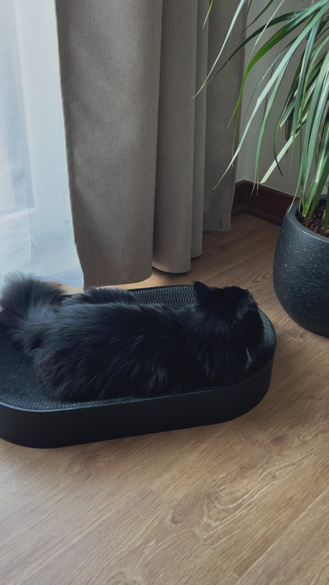 • Cartão ondulado de alta densidade – textura duradoura e satisfatória para as garras dos gatos