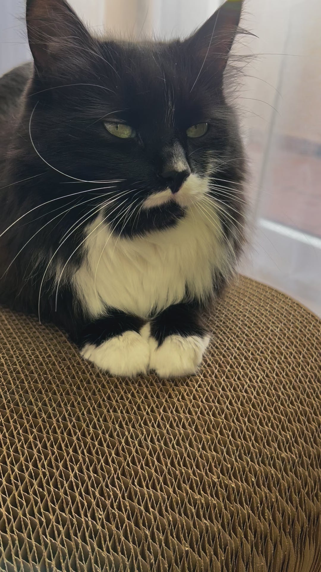 Arranhador Grande de Cartão para Gatos Browny  é um mobiliário de arranhar ecológico e versátil, projetado para satisfazer os instintos naturais do seu gato. Feito de cartão reciclado de alta qualidade, este arranhador espaçoso oferece a superfície ideal para o cuidado saudável das unhas, enquanto proporciona muito espaço para o seu gato se sentar, apoiar e brincar.